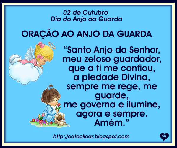 DIA DOS ANJOS DA GUARDA - A Igreja Católica comemora no dia 02 de Outubro, a festa dos Santos Anjos da Guarda. São eles espíritos celestes a quem Deus confiou a guarda e proteção dos homens.